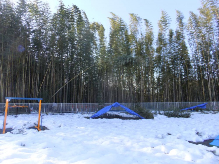 クラブハウスの裏はまだ雪が積もっています。