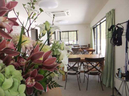 スタッフルームのドアから休憩室を撮影、お花はここに置いてあります。